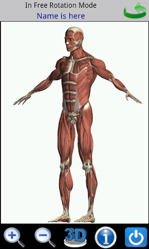 The user can zoom in to any area by tapping on the zoom in button and using the single finger panning function. The feature point (cross) can be selected by tapping on it. Detail button allows you to switch on/off the short description. For muscle section, detail button only show the description. Pressing the rotation button to allow you to change the view.