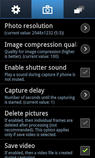 - Supports background capturing. This works ONLY on VERY FEW devices, such as the Nexus S with Android 2.3.x firmware (4.0/ICS not!)