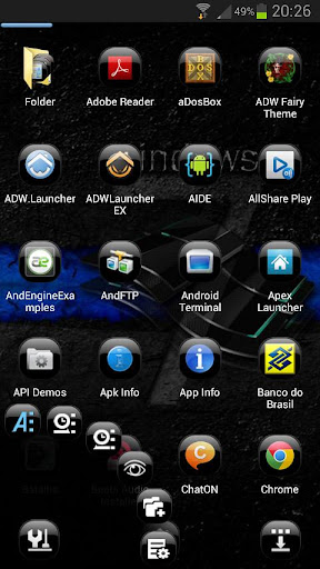 Overview: Windows 7 Next Launcher theme, black style. About 140 custom icons.