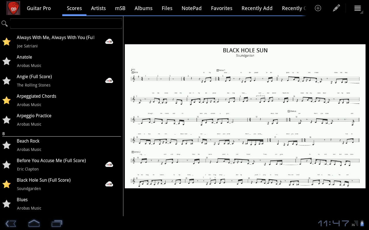The Guitar Pro application allows all guitarists to enjoy viewing, playing, as well as writing tablature easily, right from their mobile device.