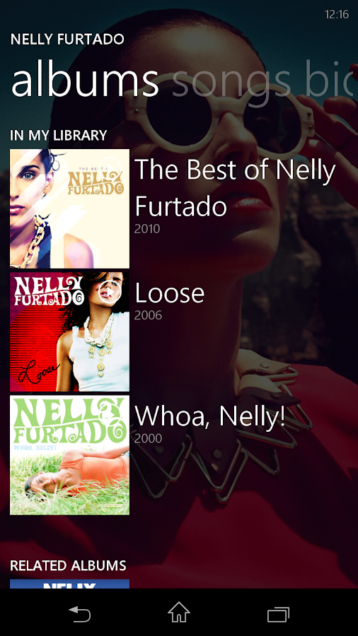 •Browse the albums sections not in your library and even get the album prices, 30 seconds audio samples of tracks, and “Buy” links to the albums.